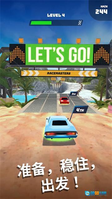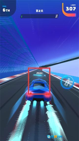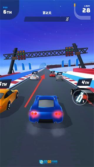 1、第2关赛道出现排名标识(如【5TH】【4TH】),跟随红色箭头方向操控赛车超车。