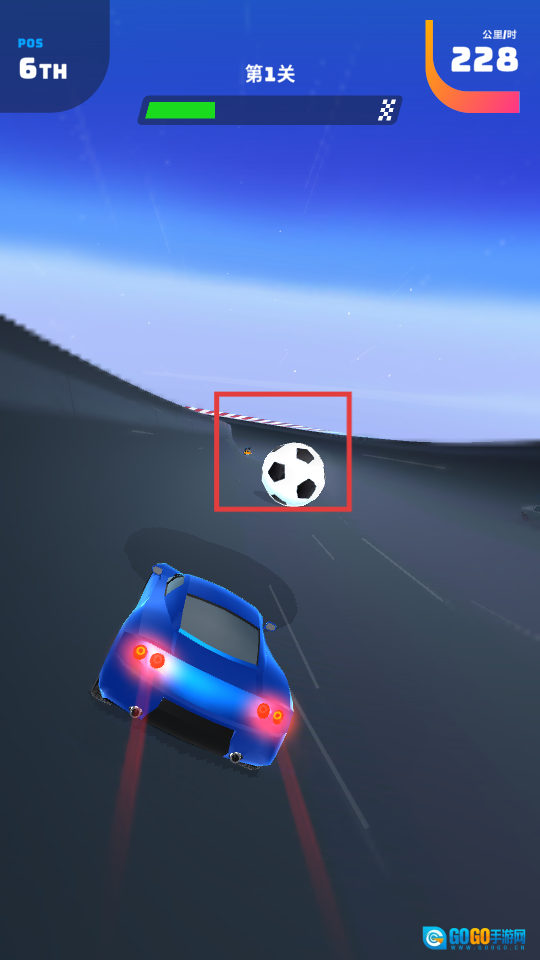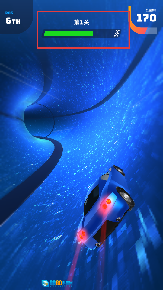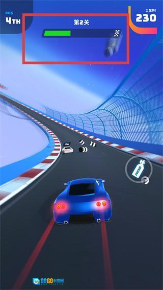 3、关注上方的关卡进度条,在赛道中持续行驶,推进【第1关】的进度。