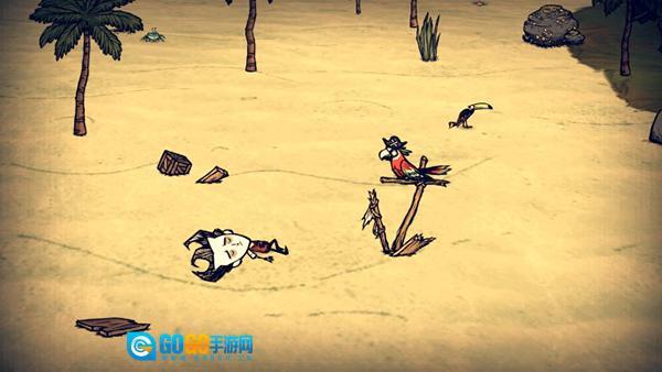 2、在海岛,留意渡渡鸟、鹦鹉等生物,避开危险,收集基础资源(草、树枝)。