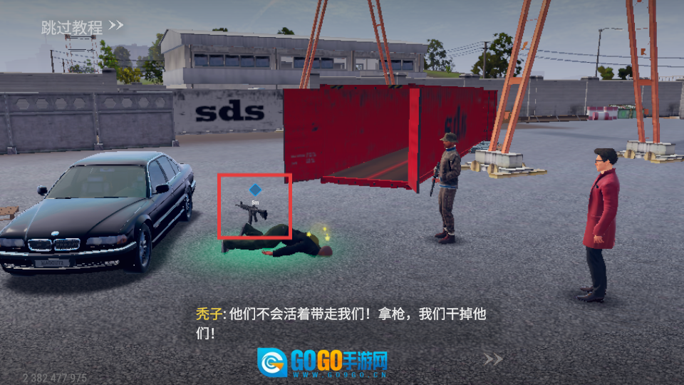2、获取枪支,按照提示【拿枪,我们干掉他们】,准备战斗。