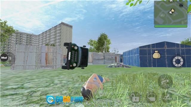 1、驾驶红色汽车到达工厂区域,点击下车按钮,准备后续行动。