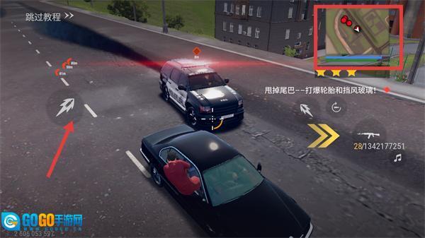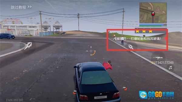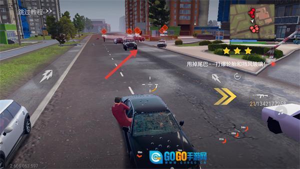 1、根据【甩掉尾巴-打爆轮胎和挡风玻璃!】提示,操控角色使用武器攻击目标车辆,完成指定破坏操作。