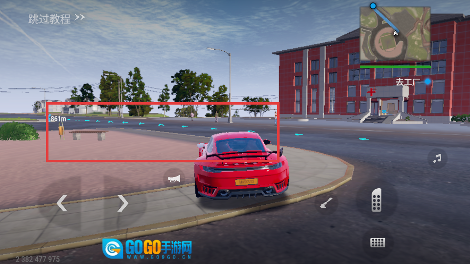 3、使用方向键和控制按钮,驾驶汽车前往工厂。