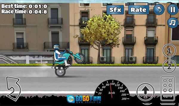 1、基础平衡控制:通过简单的手指滑动调节摩托车重心,保持前轮抬起的同时还要避开障碍物,掌握微妙的力度控制。