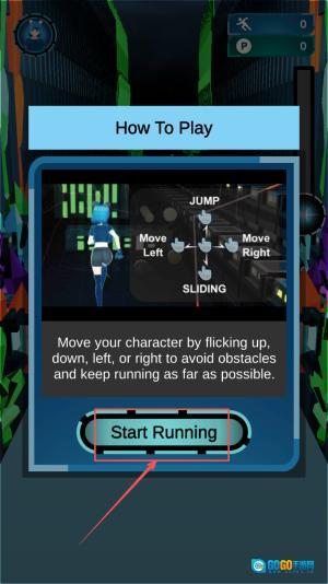 2.选择关卡:在主菜单里,点击“How To Play”图标,进入教学说明页面,阅读完后点击“开始奔跑”就能开启挑战。