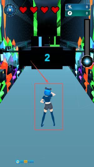 3.开始操作:进入关卡界面后,留意目标距离的提示信息,通过上下滑动的手势来操控角色左右移动,滑动屏幕即可让角色开始持续奔跑。