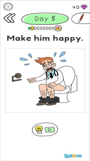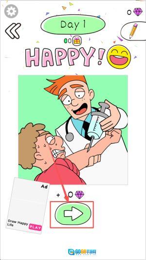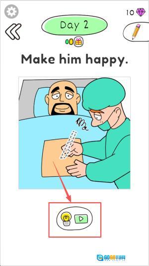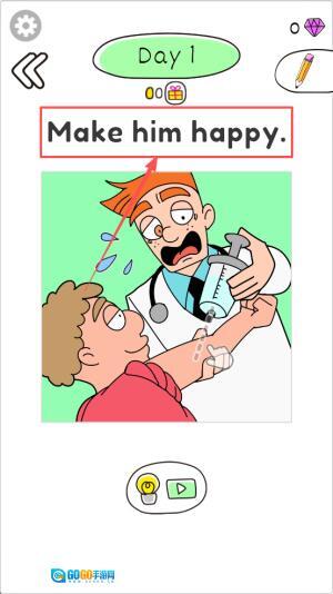 2. 选择关卡:在“Day1”界面确认任务目标为“Make him hy”后,按下“D”键即可进入诊疗房间。