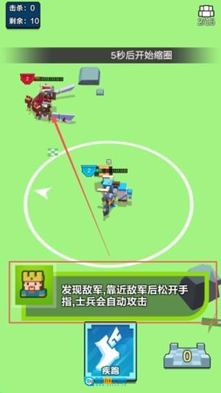 2.自动攻击:发现敌方单位后,靠近他们并松开手指,你的士兵将自动发起攻击。