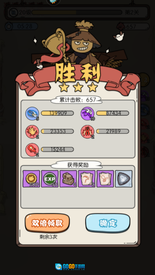 5.成功抵挡所有轮次的敌人就能通关,并且得到对应的奖励。