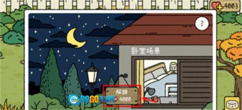 解锁卧室需要积攒4000点爱心值,点击小木牌就能完成解锁。