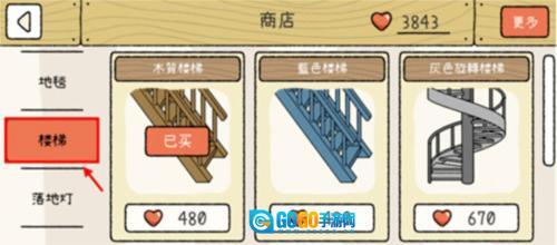 5. 若你想更换一款更美观的楼梯,可点击“商店”,选择“客厅用品”,接着切换至“楼梯”选项来挑选购买。
