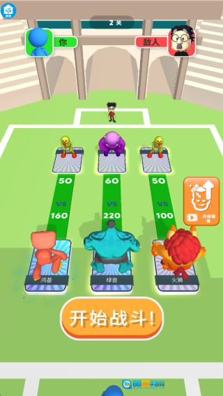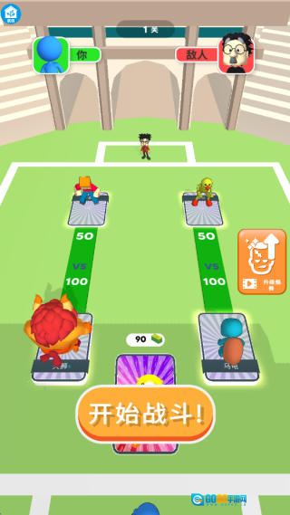4、战斗开始前先查看己方角色的战力情况,优先安排战力较高的“绿兽”等角色上阵,对阵容进行合理布局;点击“开始战斗”后,还能依据对战的实时状况来及时调整策略。