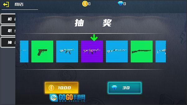 在游戏的“商店”抽奖界面,您可以使用游戏内赚取的金币参与抽奖,有机会赢取稀有武器皮肤等奖励,持续扩充您的藏品。