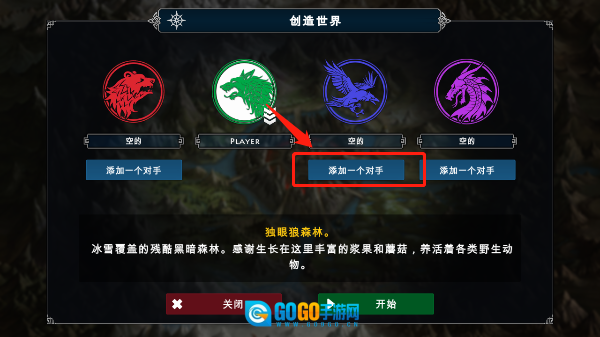 2、接下来要选择世界的环境与背景,系统默认设置为无对手,我们也可以添加一个乃至多个敌对势力。