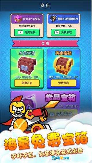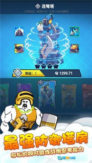 2.防御塔系统:游戏内提供四种防御塔形态,攻击方式与外观各有特色,但升级所增加的属性一致:防御力提升10%,生命值增加150。选择可依据个人偏好,例如连弩塔与机关枪塔风格不同,碎片可通过商店观看视频免费获取,容易收集但需投入时间。