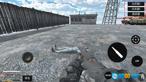 进入游戏后,能在帐篷里的桌子上发现枪支弹药,当靠近时出现手掌图标,点击即可拾取。