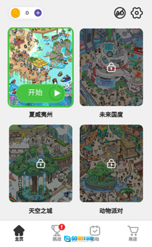1. 在不同场景里搜寻并集齐规定数量的隐藏物品,以此完成寻物挑战。