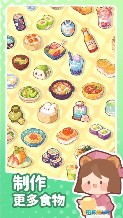 3、画面风格温馨又可爱,料理的造型精致且诱人,无论是高级寿司、香喷喷的烤肉,还是精美的饭团,都让人看着就觉得心情愉悦。
