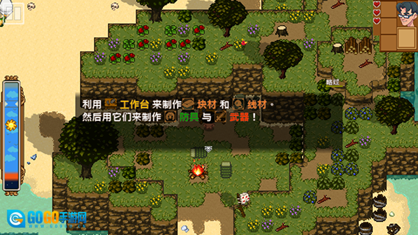 3.比如,当碰到被草丛包围的宝箱时,你得先收集材料,做一把工具来清理障碍。