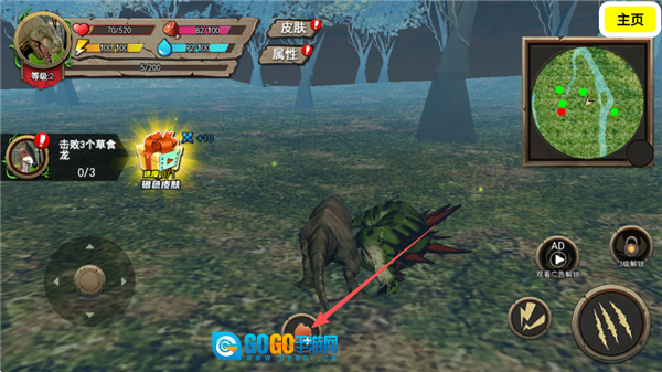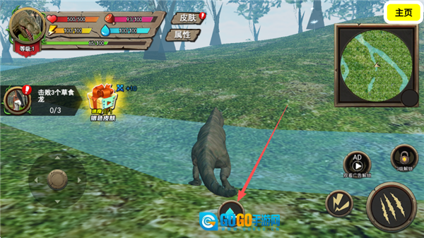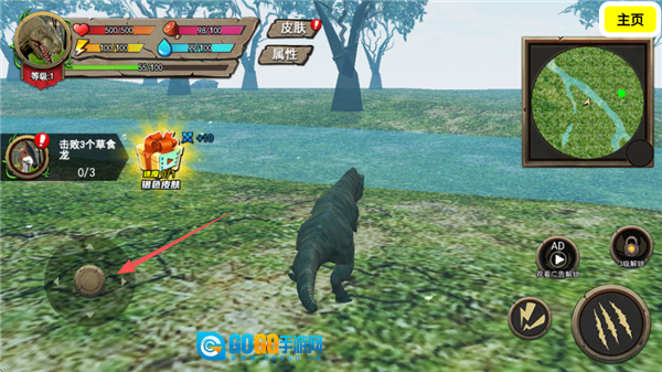 3. 你可以拖动屏幕左下角的虚拟摇杆,以此来操控恐龙的移动方向。