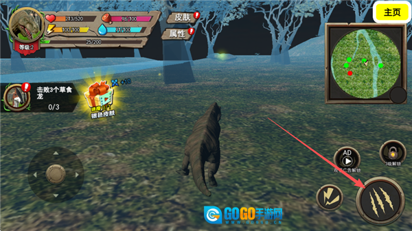 6. 当成功击败其他恐龙或生物后,点击“进食”按钮就能享用猎物,以此获取额外的经验和奖励。