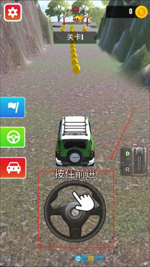 1、滑动屏幕下方的方向盘操控汽车。