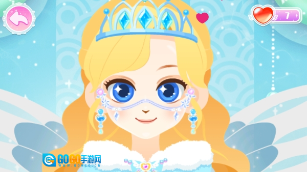 2、美容护肤流程:在梳妆台界面,玩家可进行洗脸、敷面膜等护肤步骤,随后使用彩妆工具为公主设计精致妆容,提升整体形象。