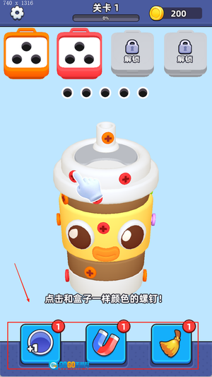 2、操作时通过点击拖动的方式来控制螺丝刀旋转,界面会清晰展示当前进度和剩余步数,另外还能查看特殊道具的使用情况,以便随时调整策略。