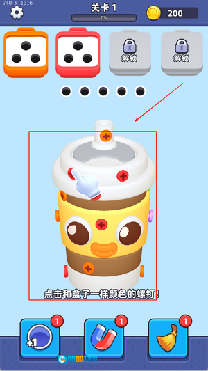 3、通关的方式是把所有钉子按照正确顺序顺利拧下并收集到目标盒子里,只有在规定时间内或者限定步数内完成,才能算是真正通过关卡。