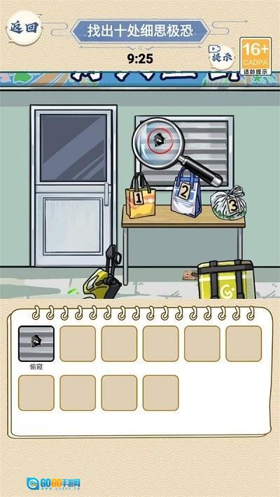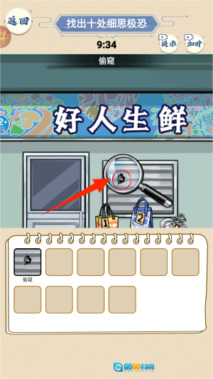 3、借助放大镜工具对画面进行细致检查,只要成功找出十处异常元素,就能完成这项挑战。