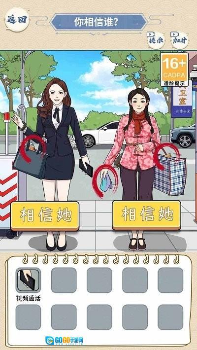4、社交推理元素,部分关卡要求分析多名角色之间的互动关联,从中找出群体里的不协调点。