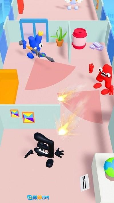 2、动态伪装机制支持玩家收集敌方字母碎片来切换形态,通过完美模仿能够潜入敌营并触发特殊剧情。在不同的伪装状态下,攻击方式会随之发生相应改变,例如伪装成B字母时,玩家可以获得泡泡枪这一武器。