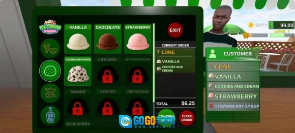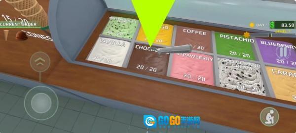 2、按照订单需求挑选冰淇淋口味,借助滑动或点击操作来精准舀取,力求让冰淇淋的形状和分量与订单要求尽可能相符。