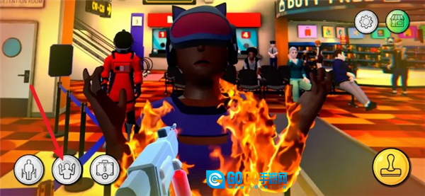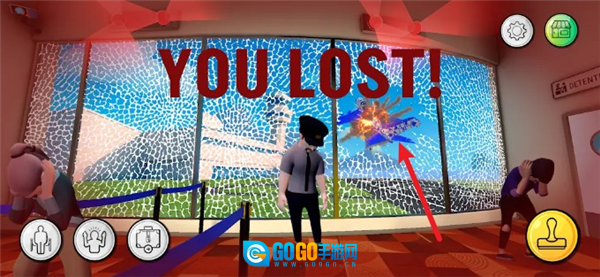 3. 遇到危险人物时,可举起武器要求其举手投降,待确认安全无误后,点击右下角的盖章按钮予以放行。