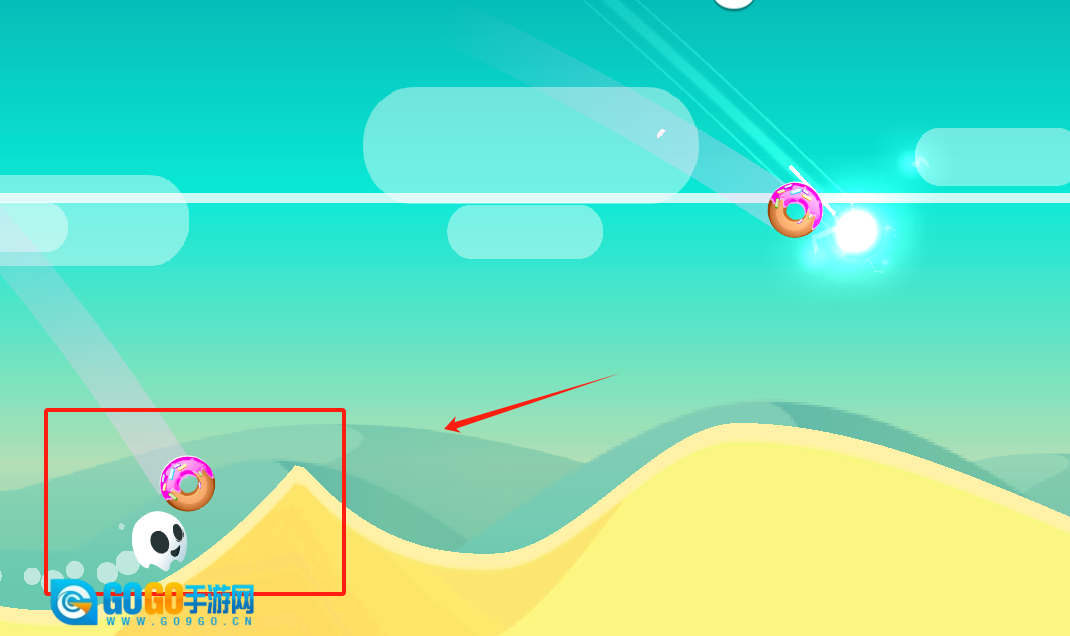 2、跳过甜甜圈和骷髅头,注意看地上和空中的障碍物,小心别撞上了。