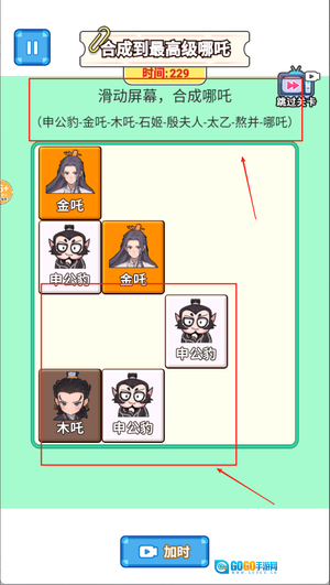 3、通关的条件是成功合成出指定角色,一般是哪吒,有些关卡还要求在限定时间内完成,或者借助道具来辅助。