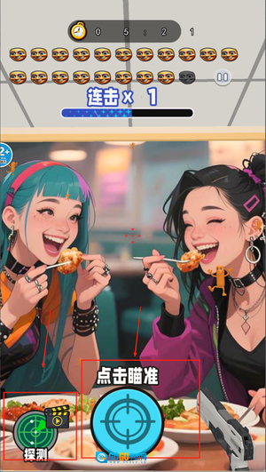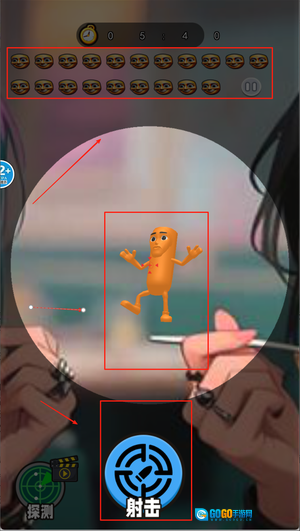2、屏幕下方设有瞄准摇杆,使用摇杆瞄准目标后点击射击按钮即可射击,屏幕上方会显示当前剩余的目标数量。