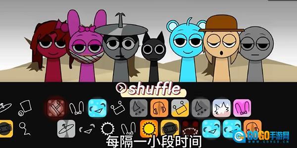 3、最后一个是隐藏角色【节拍器】,输入【shuffle】,之后每个一段时候就会有角色变化,服饰也会随之改变,最后中间的角色会变成节拍器哦!