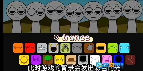 2、第二个是输入【trance】,输入完成后游戏背景会变化,将服饰拖入角色后还会有机械金属感,是第二个隐藏彩蛋;