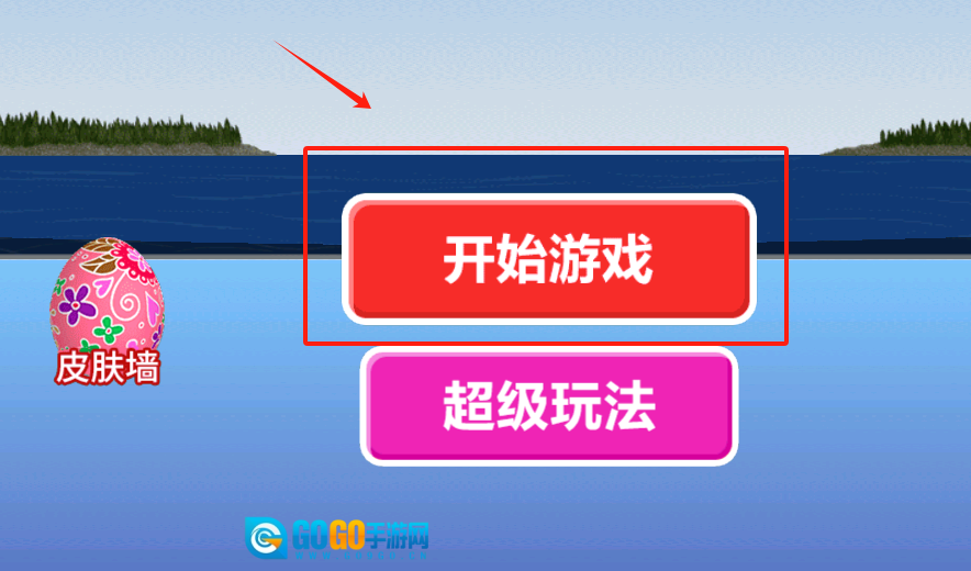 1、点击粉色花纹蛋上的开始游戏按钮,或者试试超级玩法功能,背景有蓝天绿水。
