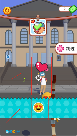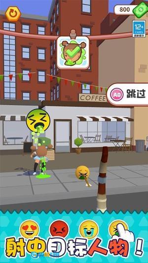 1、进入游戏后,会看到场景中出现不同的人物,玩家需要留意他们所处的位置,调整发射角度,通过发射表情包来完成击中目标的任务。