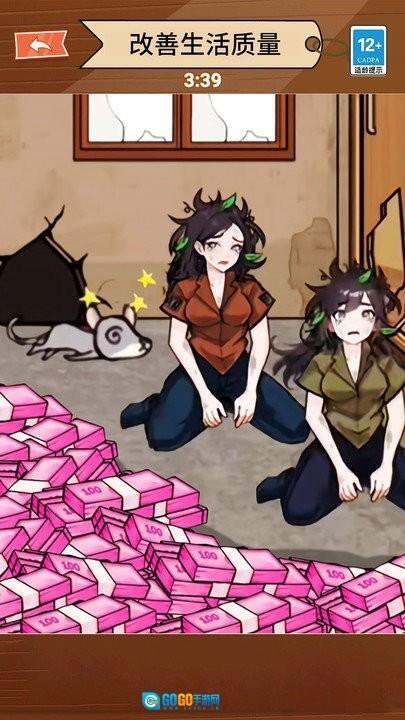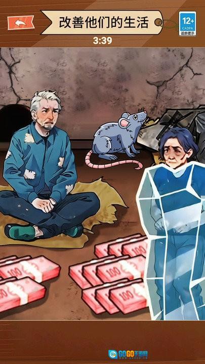 老鼠洞镶金边的趣味设计,为你带来别具一格的解谜体验。这是一款充满乐趣的休闲益智游戏,在游戏里,你可以自由选择不同的选项,丰富多样的内容足以满足你的各种需求。你需要依据关卡中的剧情卡面做出决策,帮助老奶奶一家改善生活状况。游戏过程中,你要运用有限的钱币来通关,而达成目标的方法不止一种,等待你去探索发现,快来亲自感受这种独特的玩法吧。