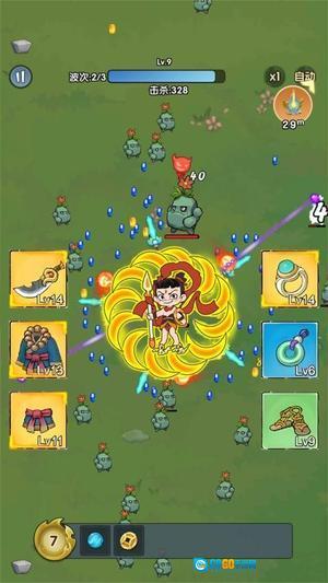 1、以《西游记》的世界观为背景,融合高速旋转刀刃的战斗机制,玩家需要操控角色在战场中保持持续旋转状态,以此来歼灭所有敌人。