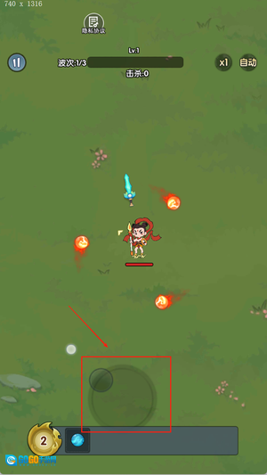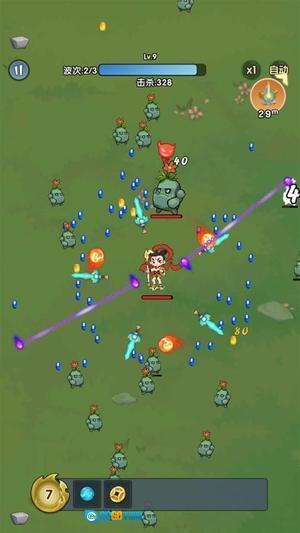 进入游戏后,先挑选角色和初始武器;之后点击屏幕来控制移动方向,通过滑动操作可以调整攻击的角度,还能释放自动旋转的攻击技能。