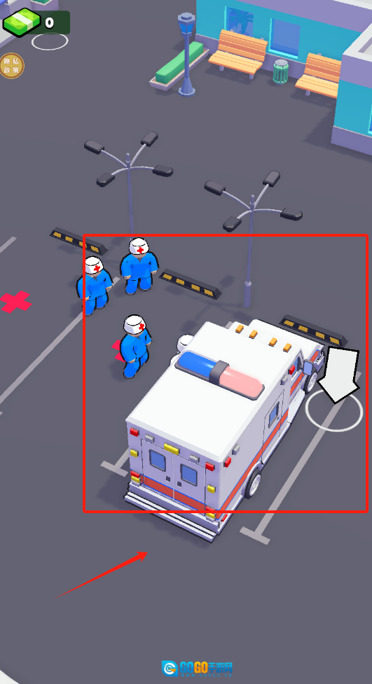 2、点击救护车可派遣医护人员出诊,在街道场景下能够接取紧急救援任务。