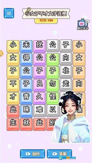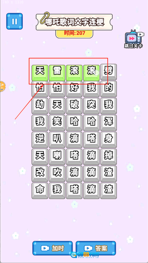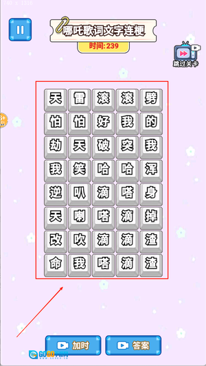 2、屏幕正中间是文字排布的区域,点击任意两个及以上的字就能进行连线,把所有词语都正确连接起来就能完成挑战。