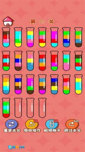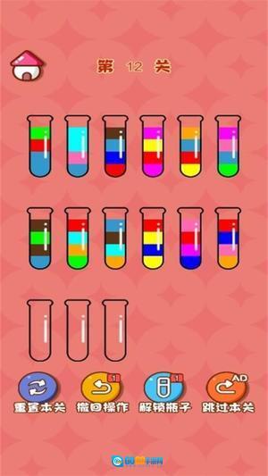 3、当所以颜色的液体全部分类好即可通关。