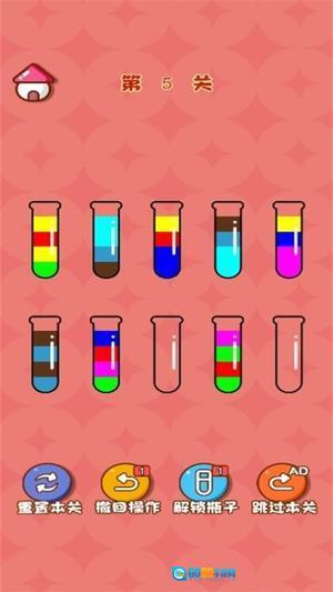 4、随着关卡推进难度逐渐上升,液体种类与层数不断增加,需要更强的逻辑推理能力与耐心应对,才能完成更高阶挑战。
