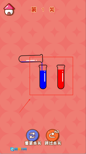 1、点击选中装有液体的试管,再次点击另一个空管或相同颜色液体上方的试管,系统会自动完成倾倒操作直至满层为止。