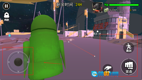 2、屏幕左侧控制角色移动,右侧设有互动和拾取按钮,遇到武器或道具时可快速拾取并投入使用。